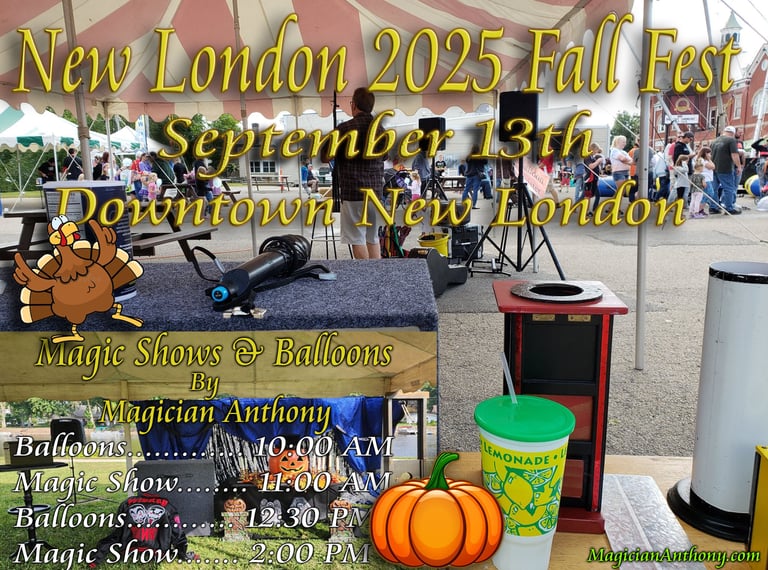 Magician Anthony's one of a kind original self-built, Mr. Jack o'lantern Halloween Magic Tour Show To Mr Jack o'lantern's House is a spook-tacular experience! With its unique blend of magic and Halloween spirit, it's sure to delight both kids and adults. The promise of loads of candy at the end is the icing on the cake (or should I say, the candy in the trick-or-treat bag?) Trick or treat people how you want to be treated is a great play on the classic "trick or treat" phrase, emphasizing the importance of kindness and respect. Magician Anthony has build and created a truly one-of-a-kind experience that's sure to make this Halloween season one to remember! Click Pumpkin Image for video link!